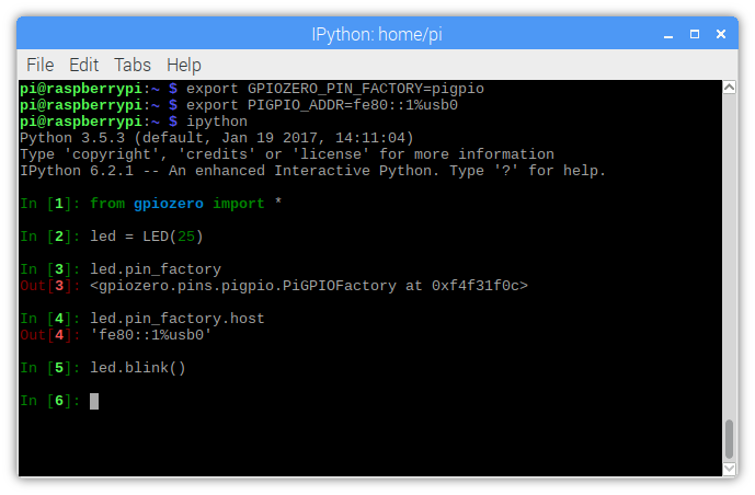 Raspberry Pi Zero 和 Pi Zero W 具有一个 USB OTG 端口,允许用户将设备配置为(除其他外)以太网设备。在这种模式下,可以使用 远程GPIO 功能从另一台计算机通过 USB 控制 Pi Zero 的 GPIO 引脚。
